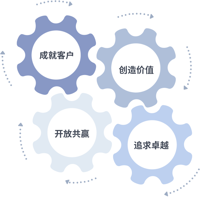 成就客户是一切决策的出发点,创造价值是衡量所有工作的标准,追求卓越是超凡国际做事做人的态度,开放共赢是超凡国际的格局也是最终的结果。价值观的齿轮环环相扣,推动着组织里的每个人不断向前。